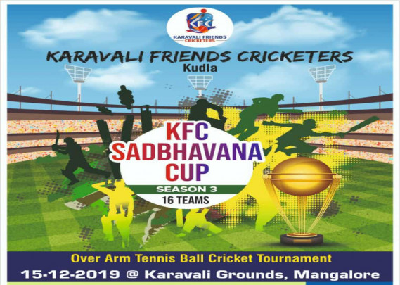 Karavali friends cricketer's organising KFC Sadbhavana Cup season 3 on december 15, 2015 at Karavali ground, Mangalore. Total 16 teams are participating in this tournament and winners is going to get Rs 25000 cash and a...